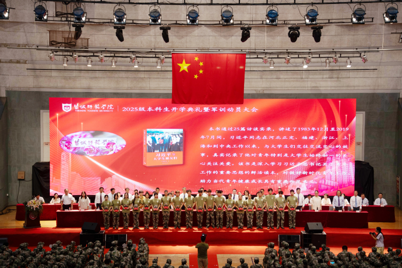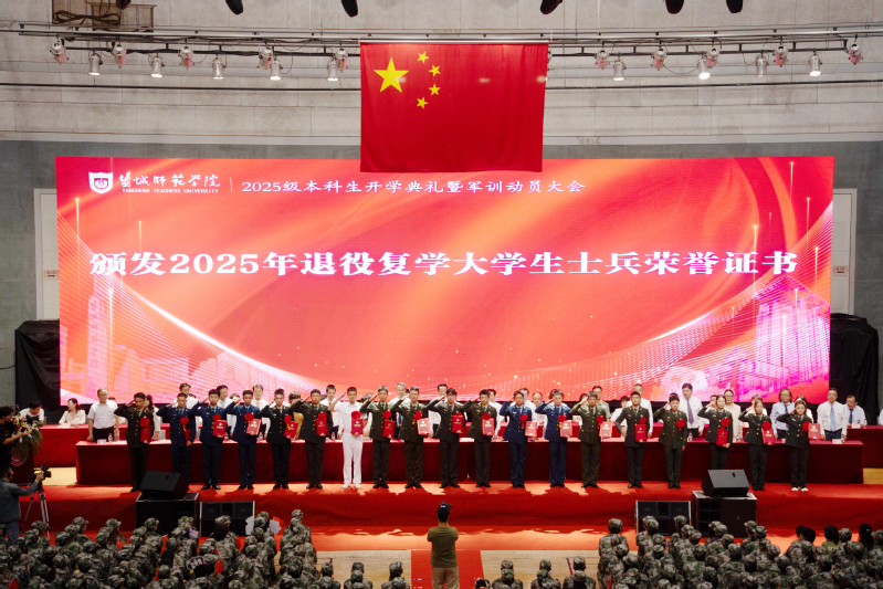 校领导还为积极响应国家号召携笔从戎、报效祖国,用热血书写无悔青春的2025年退役复学大学生士兵代表颁发荣誉证书,并向2025级新生代表赠送《习近平和大学生朋友们》和伟德国际1949官网校徽,祝贺他们成为“盐师人”。典礼在齐唱伟德国际1949官网校歌中落下帷幕。