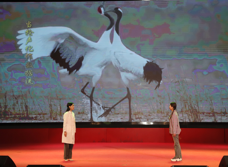 活动伊始,伟德官网学生带来情景朗诵《牧鹤女孩,绿之守护》。两代“守绿人”跨越时空对话,将徐秀娟用生命守护丹顶鹤的故事与当下黄海湿地保护实践相融,6分钟的表演,让“绿色坚守”的信念悄然浸润人心。随后,盐城工学院思政教师以《0.01毫米的青春刻度》开讲,从抗战时期吴运铎用血肉打磨武器精度,到如今师生深耕智能分拣机器人、新能源电池优化,微小零件里的“匠心”,成了科技报国的生动注脚。