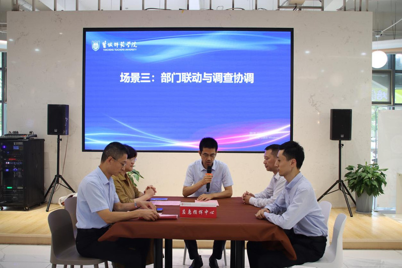 本次演练场景模拟3名学生在宿舍就餐后出现呕吐、腹泻等疑似食物中毒症状后的应急处置工作。演练现场,接到相关报告后,徐华随即指示成立食物中毒应急处置指挥中心,启动学校食物中毒事故应急处置预案。各部门闻令而动,医护人员立即赶赴现场开展流调处理,相关学生按照要求紧急送往医院救治;保卫处迅速设立警戒区,维持现场秩序;涉事窗口被紧急封锁并同步向上级主管部门和市场监督部门报告;市场监管和疾控部门迅速抵校,对食堂操作间、仓库、留样柜以及宿舍现场进行勘查,采集呕吐物、食品留样等标本;宣传部做好舆情应对,统一有效回应社会关切;学工部门联系二级学院,协同做好学生家长以及学生的安抚工作。整个流程响应迅速、处置规范,展现了高效的协同、协调的作战能力。