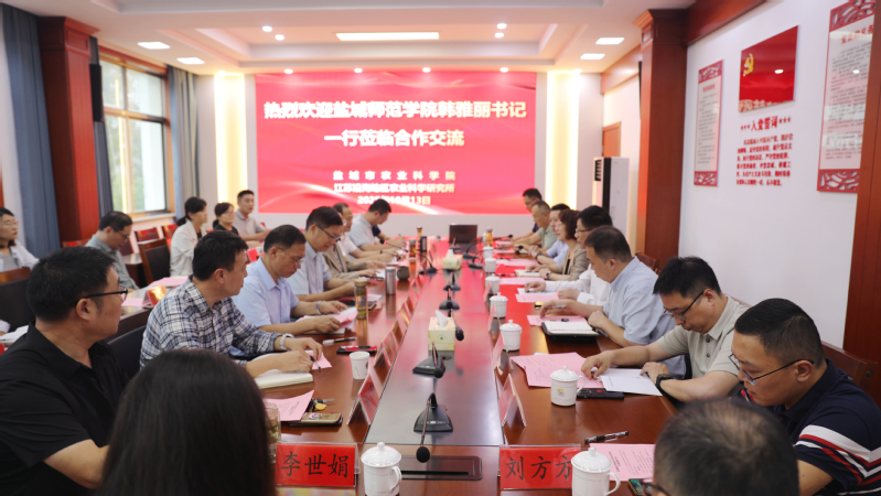 10月13日下午,学校党委常委、纪委书记、省监委派驻监察专员韩雅丽带领海洋与生物工程学院相关团队赴江苏沿海地区农业科学研究所(盐城市农业科学院)(以下简称沿海所)开展合作交流。沿海所院长周汝琴主持交流会。
