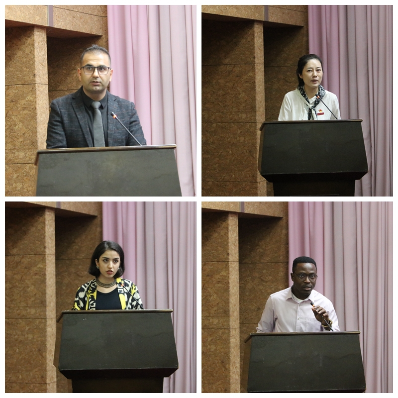 随后,人工智能学院(软件学院)AHMED CEMILOGLU老师、商学院(数字经济学院)裔小茜老师、2024级留学生MALOKHAT NAZARSHOEVA、2025级留学生WILSON JENKINS GOD’STIME分别作为教师代表、班主任代表、高年级学生代表、新生代表发言。