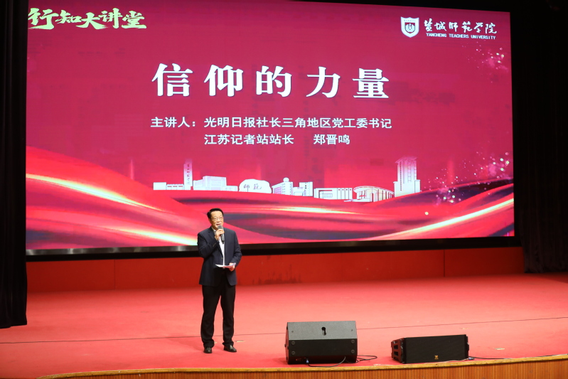10月27日下午,伟德官网新长校区大学生活动中心内座无虚席。光明日报社高级记者、第十二届范长江新闻奖获得者郑晋鸣应邀走进伟德官网“行知大讲堂”,以“信仰的力量”为题作专题报告。学校党委书记张玉勤主持报告会。全校500余名教职工代表及二级学院新生代表现场聆听,共赴一场心灵盛宴。
