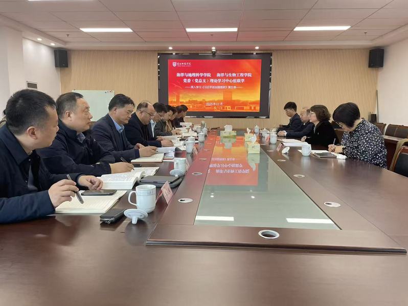 联学以“深入学习党的创新理论,推动学科专业高质量发展”为主题。会上,海洋与生物工程学院党总支书记朱京凤领学了党的二十届四中全会精神及《习近平谈治国理政》第五卷中关于教育强国建设的重要内容。马克思主义学院院长王志国教授应邀就《习近平谈治国理政》第五卷的核心要义作专题辅导报告。交流研讨环节,海洋与地理科学学院党委副书记、院长李传武,海洋与生物工程学院党总支副书记、院长康贻军作重点发言。相关学院中心组成员围绕主题作研讨发言。