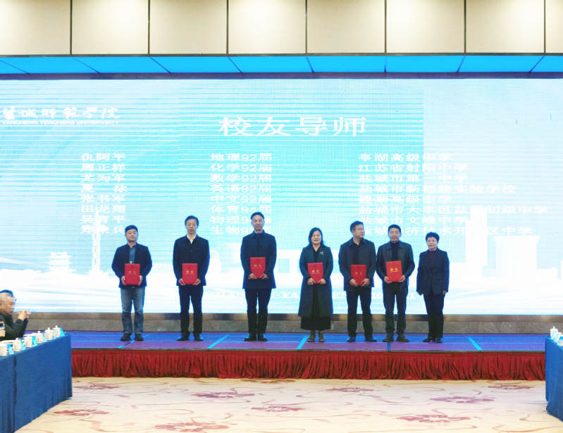 会上,毕凤珊颁发校友导师聘书。学校聘请在盐城地区中小学担任书记、校长的校友为校友导师,进一步密切学校与基础教育的联系,充分发挥优秀校友的示范引领作用,为在校学生成长成才提供更加精准的指导与帮助。
