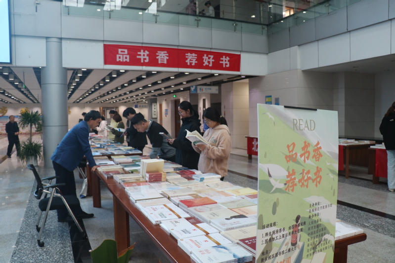 11月12日,伟德官网在新长校区举办“品书香 荐好书”读者荐书活动,副校长徐华现场指导。