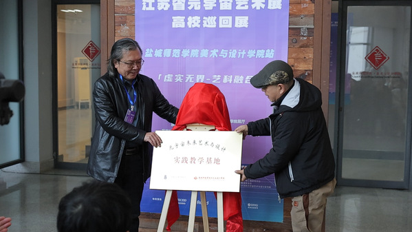 本次活动以“探索艺术与科技融合的无限可能”为核心,涵盖开幕式、元宇宙艺术展演、主题演讲、学术研讨及设计实践工坊等五大板块,形成“展览+论坛+实践”的多维交流矩阵。开幕式上,美术与设计学院、江苏省科普美术家协会分别代表承办方和主办方发言,并共同为“元宇宙未来艺术与设计产教融合实践基地(盐城)”揭牌,标志着校地合作在元宇宙艺术教育与实践领域迈出实质性步伐。