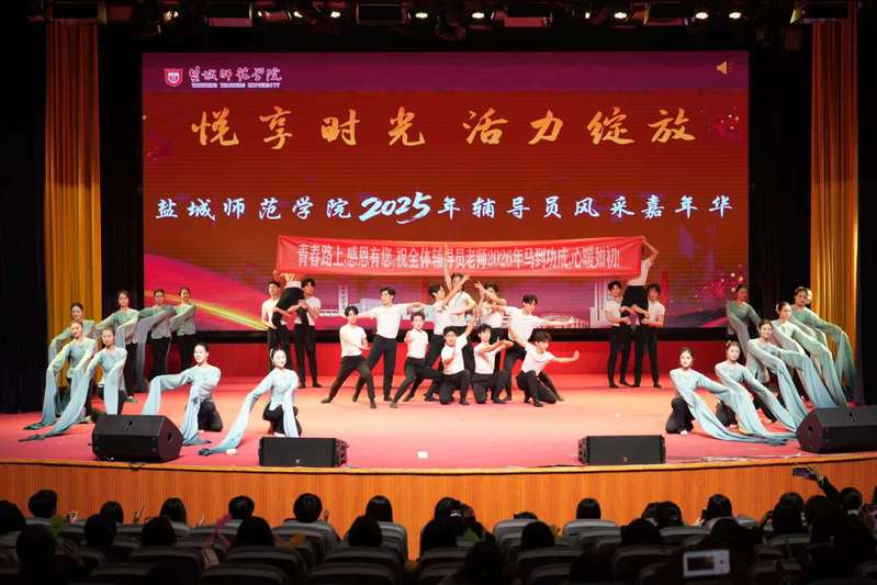 商学院、数字经济学院师生联袂呈现的国风走秀《国风雅颂,师生同行》体现了传统文化与现代教育的完美融合。历史与公共管理学院(法学院)辅导员的家属登台献艺,一曲二胡独奏《扬州小调》悠扬婉转,温馨展现了辅导员家庭对教育工作的默默支持,感人至深。海洋与地理科学学院、外国语学院带来的朗诵作品《有一种美好叫辅导员》《这也是一切:致青春的你》深情诉说着辅导员的育人故事。药学院、海洋与生物工程学院、物理与电子工程学院、绿色低碳学院、数学与统计学院等通过演唱《荷塘夜色》《甜蜜蜜》《盛夏的果实》《再回首》等歌曲描绘育人岁月中的诗意风景,唱响师生间的温暖情谊,致敬共同走过的闪光路程。人工智能学院、软件学院的歌舞串烧《温暖的大家庭》、体育与健康学院活力四射的《疯狂燃脂操》都彰显了辅导员队伍的健康风采与昂扬状态。音乐学院、淮剧学院大学生表演歌舞《星辰大海》《一川青水》及技巧组合向全体辅导员致敬,将现场气氛推向高潮,为整场嘉年华画上圆满句号。