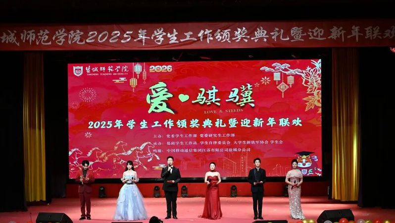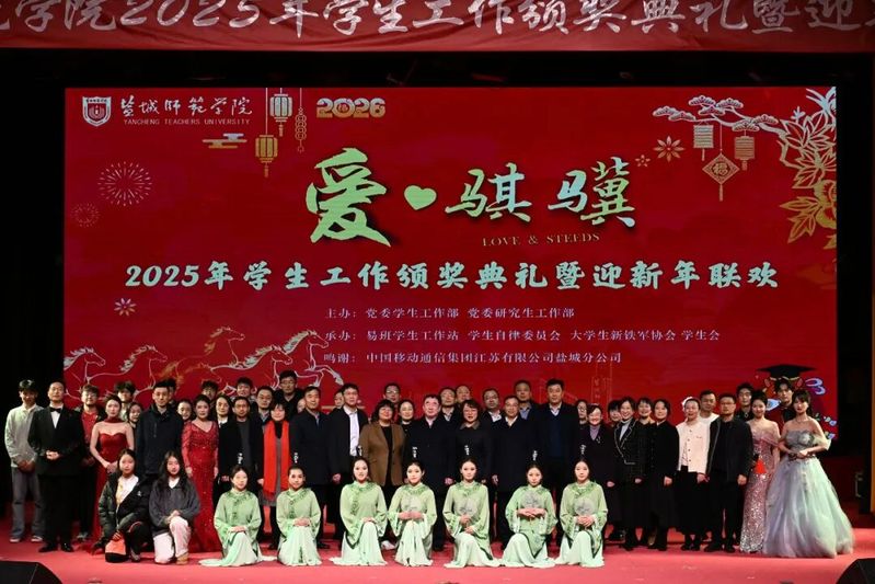 学校党委宣传部、党委组织部、党委统战部、校友办、工会以及学工委成员单位负责人,各二级学院党政负责人,辅导员、班主任、学生代表以及盐城移动公司的嘉宾等400余人欢聚一堂,共话育人成果,共贺新年新禧,共启2026年奋进新程。