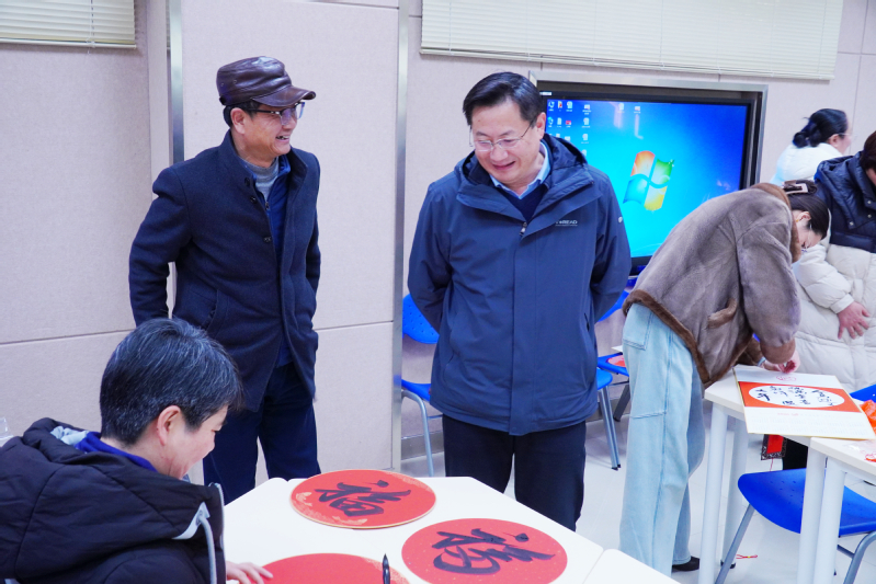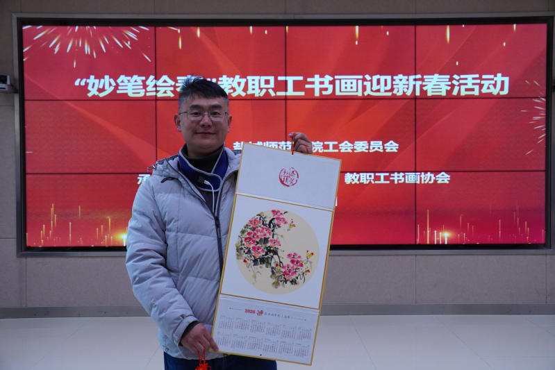活动现场暖意融融,张桂华与现场教职工亲切交流,详细了解创作情况。在挥毫泼墨之间,一个个饱满厚重、寓意吉祥的“福”字,一张张意境悠远的国画台历陆续成形,围观的教职工纷纷拿出手机,记录下这精彩的创作瞬间。在活动特设的免费赠字画环节,师生按需领取现场创作的台历、福字,将定制的专属祝福作品带回家。