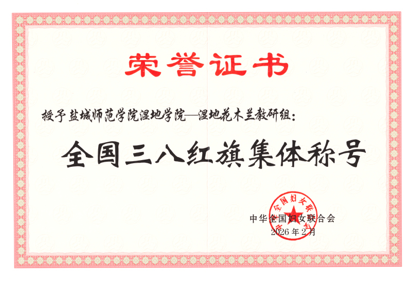 近日,全国妇联在京举行纪念“三八”国际妇女节暨表彰大会,大会表彰了全国三八红旗手标兵、全国三八红旗手、全国三八红旗集体和全国巾帼文明岗。伟德官网湿地学院——湿地花木兰教研组荣获“全国三八红旗集体”称号。