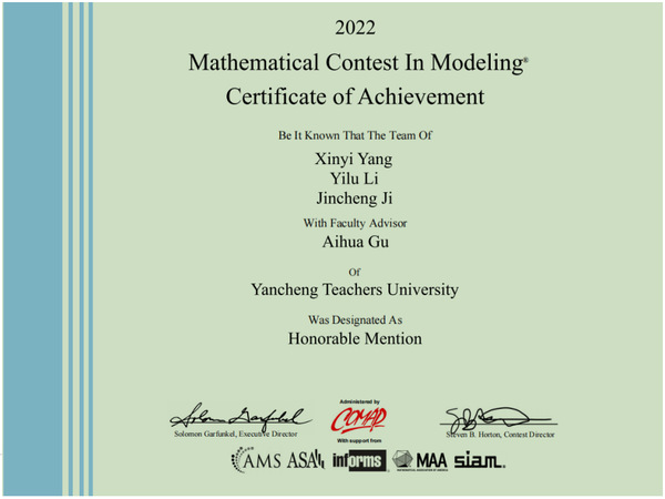 信息工程学院学子在2022年美国数学建模竞赛中再创佳绩