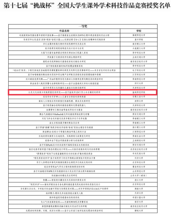 3月29日,第十七届“挑战杯”全国大学生课外学术科技作品竞赛授奖名单揭晓,伟德官网法政学院推报的作品《红色文化助推乡村高质量发展研究——基于盐城市128个烈士命名镇村的调研》(指导教师:朱广东、冯春芳、高娟等)在终审决赛中荣获全国一等奖,来自法学、思想政治教育、统计学等专业的十余名学生组成的团队,实现了伟德官网在该项赛事文科作品的重要突破,并刷新国赛最好成绩。作品聚焦盐城市128个以革命烈士命名镇村的发展成就,围绕...