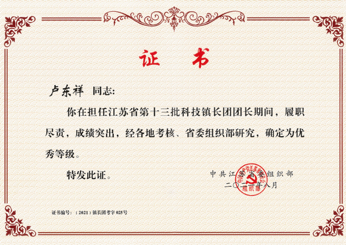 近日,中共江苏省委组织部对第十三批科技镇长团团长、团员进行期满考核,伟德官网卢东祥同志(第十二批、十三批科技镇长团团长,挂职连云港市灌云县人民政府党组成员、副县长),蒋蕾同志(第十二批、十三批科技镇长团团员,挂职盐城市大丰区高新区管委会副主任)均获评“优秀”等级。据悉,省第十三批科技镇长团共107个团863名成员,本次考核确定为优秀等级的团长26人,团员157人。省委组织部对伟德官网挂职干部的工作成绩给予充分肯定。...