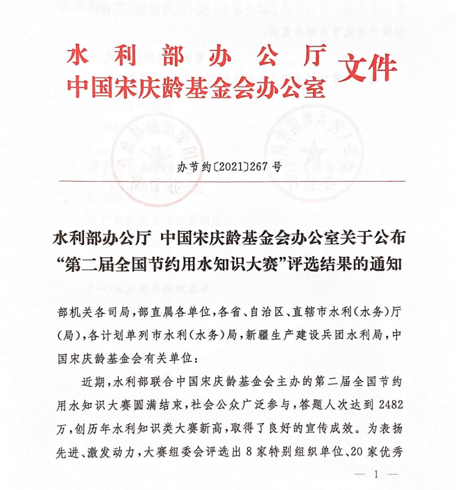 伟德官网获评第二届全国节约用水知识大赛优秀组织单位