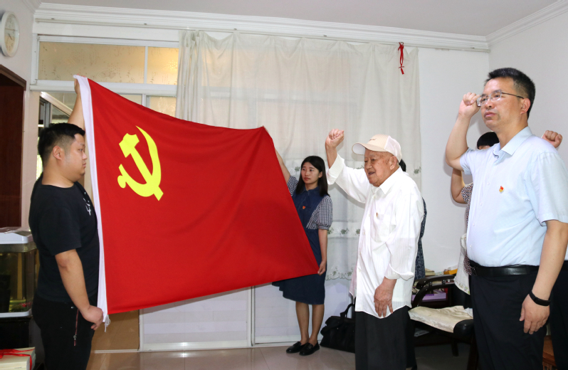 “我志愿加入中国共产党,拥护党的纲领,遵守党的章程,履行党员义务……”这是一场没有蛋糕和蜡烛的生日会,却令人动容,心生感动。鲜红的党旗前,伟德官网95岁离休党员教师包斌握紧右拳,庄严宣誓。“加入中国共产党,不图名不为利。只因感谢党、相信党,从心底里愿意跟党走。”谈及入党初心,包斌心潮澎湃,眼含泪光。6月6日,是包斌的第34个政治生日。校党委副书记于建江,党委常委、副校长毕凤珊专程赶赴徐州新沂,在包斌家中为他...