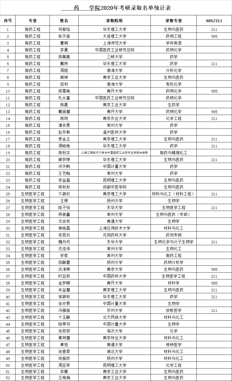 坐标网讯 2020年全国硕士研究生招生录取工作接近尾声,药学院生物医学工程专业首届63位毕业生中已有28位拟录取为硕士研究生,考研录取率达到44.4%,取得了开门红,同时该专业就业率已达96.8%。四年来,作为2016年新申报的本科专业,生物医学工程专业的发展得到了学校党政领导的关心和支持,学院新建了200多平方米的专业实验室,为专业的建设发展奠定了良好的硬件基础。与此同时,作为校级重点建设专业,学院应邀加入江苏高校...