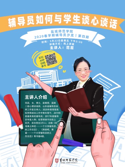 坐标网讯 为进一步加强辅导员队伍建设,提升疫情防控期大学生思想政治教育的针对性和实效性,5月22日下午,伟德官网2020春学期第四期线上辅导员沙龙活动成功举行。本次沙龙特邀2019年度全国最美辅导员、第九届全国高校辅导员年度人物,山东大学辅导员范蕊老师担任主讲人,各二级学院分管学生工作副书记、辅导员,学生工作处全体工作人员参加了沙龙。学生工作部部长、学生工作处处长李健明主持。范蕊以《辅导员如何与学生谈心谈话...