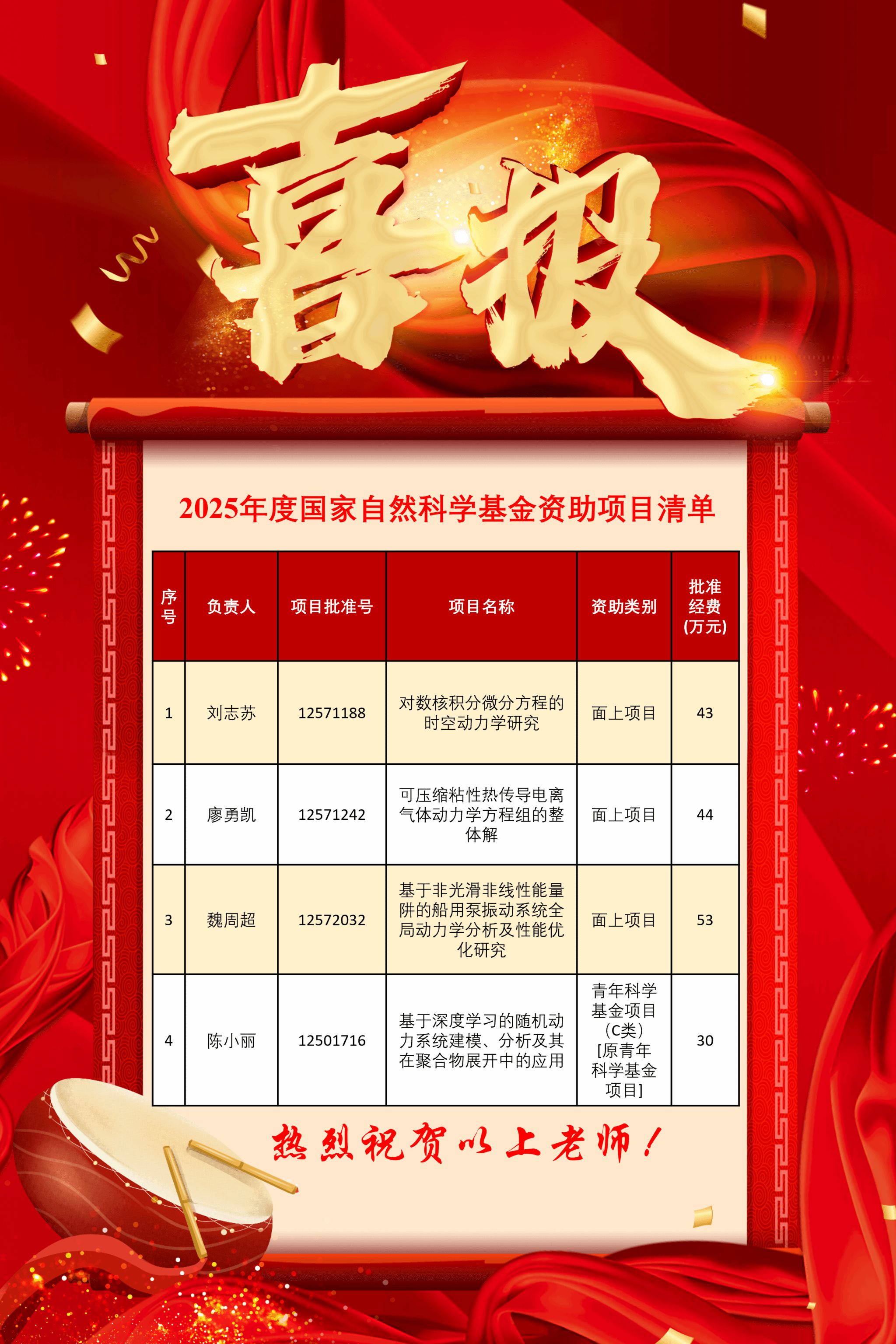 2025年8月27日,国家自然科学基金委员会公布了2025年集中接收期项目评审结果,德赢官网共有4项项目获得立项资助,其中面上项目3项、青年科学基金项目(C类)[原青年科学基金项目] 1项。