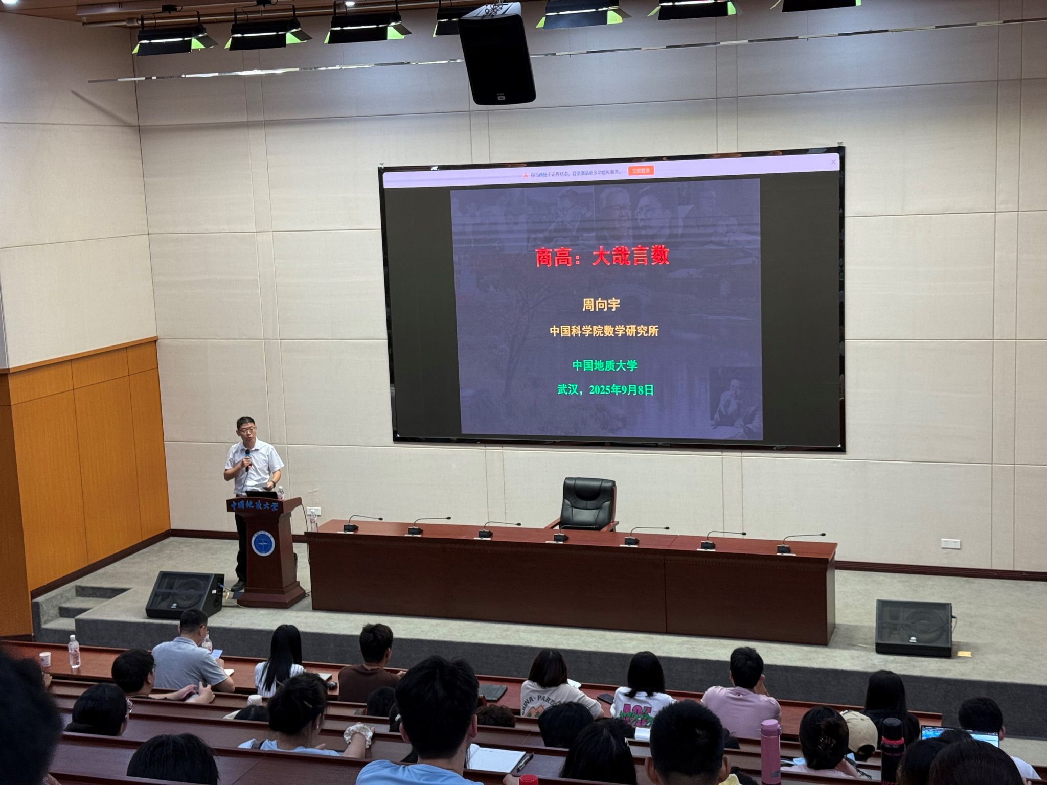 2025年9月8日,应数学与物理学院院长魏周超教授的邀请,中国科学院院士、发展中国家科学院院士、中国科学院数学与系统科学研究院周向宇研究员做客德赢ac米兰官方合作(武汉)“名家论坛”,在南望山校区东区教学综合楼A0116会议室为德赢官网师生带来了一场题为“商高——大哉言数”的精彩学术报告。本次报告会由德赢官网魏周超教授主持。2025级研究生、本科生百余人参加此次报告。