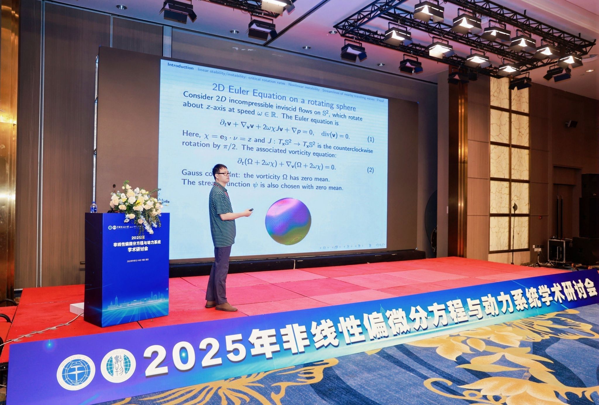 为期两天的学术研讨环节采用 “主旨报告+分会场报告”形式,内容丰富且兼具深度与广度。郭岩教授(美国布朗大学)、林治武教授(复旦大学)、江宁教授(武汉大学)、刘双乾教授(华中师范大学)、段金桥教授(大湾区大学)等近30 位专家学者先后登台,围绕非线性偏微分方程与动力系统中的前沿热点问题分享最新研究成果,现场学术氛围浓厚,思想交锋频繁。本次研讨会不仅聚焦理论突破,更注重成果应用与学科交叉。报告中既有对偏微分方程解的存在性、正则性等基础理论的深入探究,也包含对传染病模型、海洋流动模型等实际问题的数学刻画,充分体现了数学学科在解决现实复杂问题中的重要支撑作用。来自国内外高校的青年学者积极参与提问交流,为学术传承与创新注入青春活力。本次会议的组织工作严谨高效,参会专家学者纷纷表示,会议为国内外微分方程领域研究者搭建了高效的交流合作桥梁,不仅分享了前沿学术成果,更启迪了新的研究思路,对推动非线性偏微分方程与动力系统领域的发展具有重要意义。