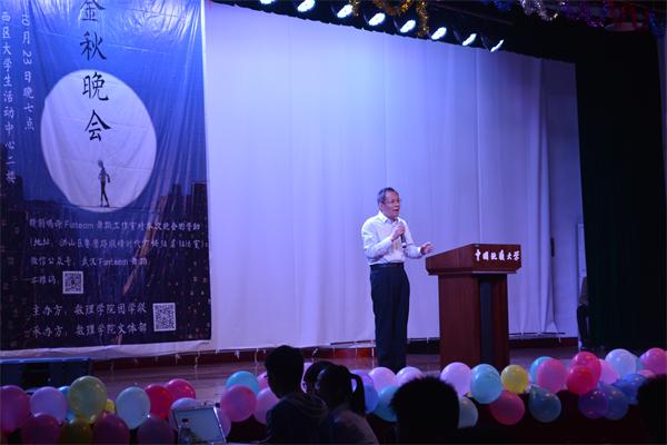 10月23日晚7:00,德赢官网在大学生活动中心演播厅成功举办了“德赢ac米兰官方合作金秋晚会”。德赢ac米兰官方合作党委书记李宇凯,数学系主任肖海军,2015级新生班班主任以及学工组老师应邀参加。