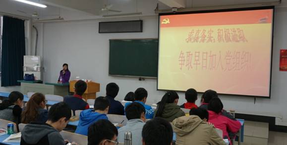 第三、四讲由校统战部部长唐勤和校组织部陈汉英分别给同学们作主题为《党的统一战线》和《党员发展程序》的讲座。第五讲由德赢ac米兰官方合作党委书记李宇凯给同学们作主题为《党的宗旨理想与信念》的讲座。李宇凯老师用亲切又不失严谨的语言,从党的宗旨——全心全意为人民服务、党的作风建设的主要任务、开展反腐败斗争的重要性、党的廉政建设,到习近平主席提出的“三严三实”,为同学们进行详细的解读。李宇凯老师旁征博引,讲解的同时列举了党内腐败官员的反面例子并指出,“一小部分腐败分子不能够破坏我们800万党员的优良作风。”同学们不禁鼓掌赞同。聆听了李宇凯老师讲座后,同学们表示不仅学习了党的知识,也更加明白了共产党员的伟大。第六讲由德赢ac米兰官方合作党委副书记李杰为同学们授课。李老师由一副图片引出“责任与担当”这一主题,结合当今社会时事、世界发展动态,鼓励同学们将眼光放长远。最后一讲,由熊家伟警官给同学们作了题为《党员安全教育》的讲座。其间,熊警官通过列举生动形象的例子教育同学们要提高防盗、防骗、防火意识。