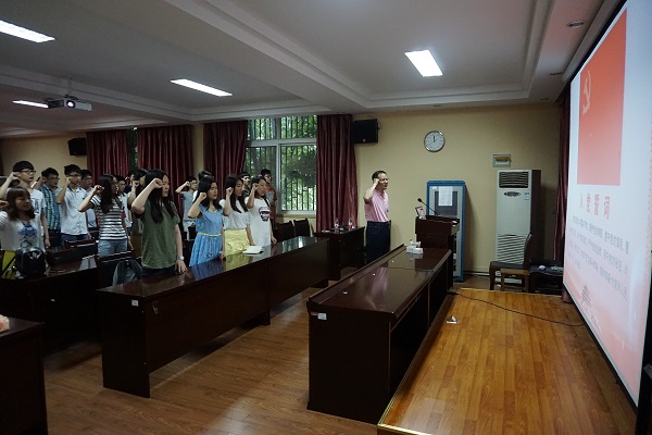 最后,全体与会党员在李宇凯同志的带领下,重温入党誓词。全体同志举起了右拳庄严宣誓。大家表示,要时刻牢记入党誓词并在实际行动中遵守自己的誓言,以优异的成绩向建党九十五周年献礼!
