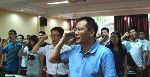 会上,院党委书记李宇凯带领师生党员重温了入党誓词。