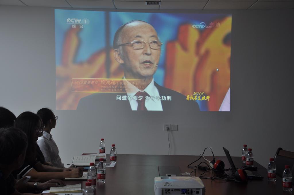 2018年9月10日晚8点,德赢ac米兰官方合作师生代表在教学综合大楼A1505会议室共聚一堂,观看中央电视台综合频道举办的“寻找最美教师”颁奖晚会。学院党政领导、师生代表参加此次座谈会。观看颁奖典礼后,殷鸿福院士身上的矢志报国、求真务实、潜心育人、为人修行等优秀的品质令现场每一位师生深受感动和敬佩。