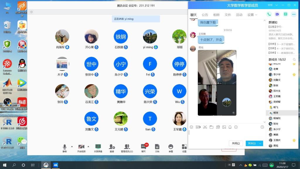 根据教育部和学校在当前疫情条件下“停课不停教”,“停课不停学”的要求,自2月10日始,德赢官网承担全校的近270门次本科生课程均开展了线上教学。为进一步提高在线教学质量,保证教学秩序,2020年3月16日至17日,数学与物理学院六个系(部、中心)分别在腾讯会议平台召开了云端教学工作视频会议,就疫情防控期间新学期线上教学相关工作做进一步交流、讨论和部署。全院96名任课教师参加了此次线上教学会议和讨论,郭上江院长、吴太山书记、徐超副书记、黄刚副院长、张光勇副院长、教务科张世中和石铁钢老师全程参加了各个系(部、中心)的分组会议。