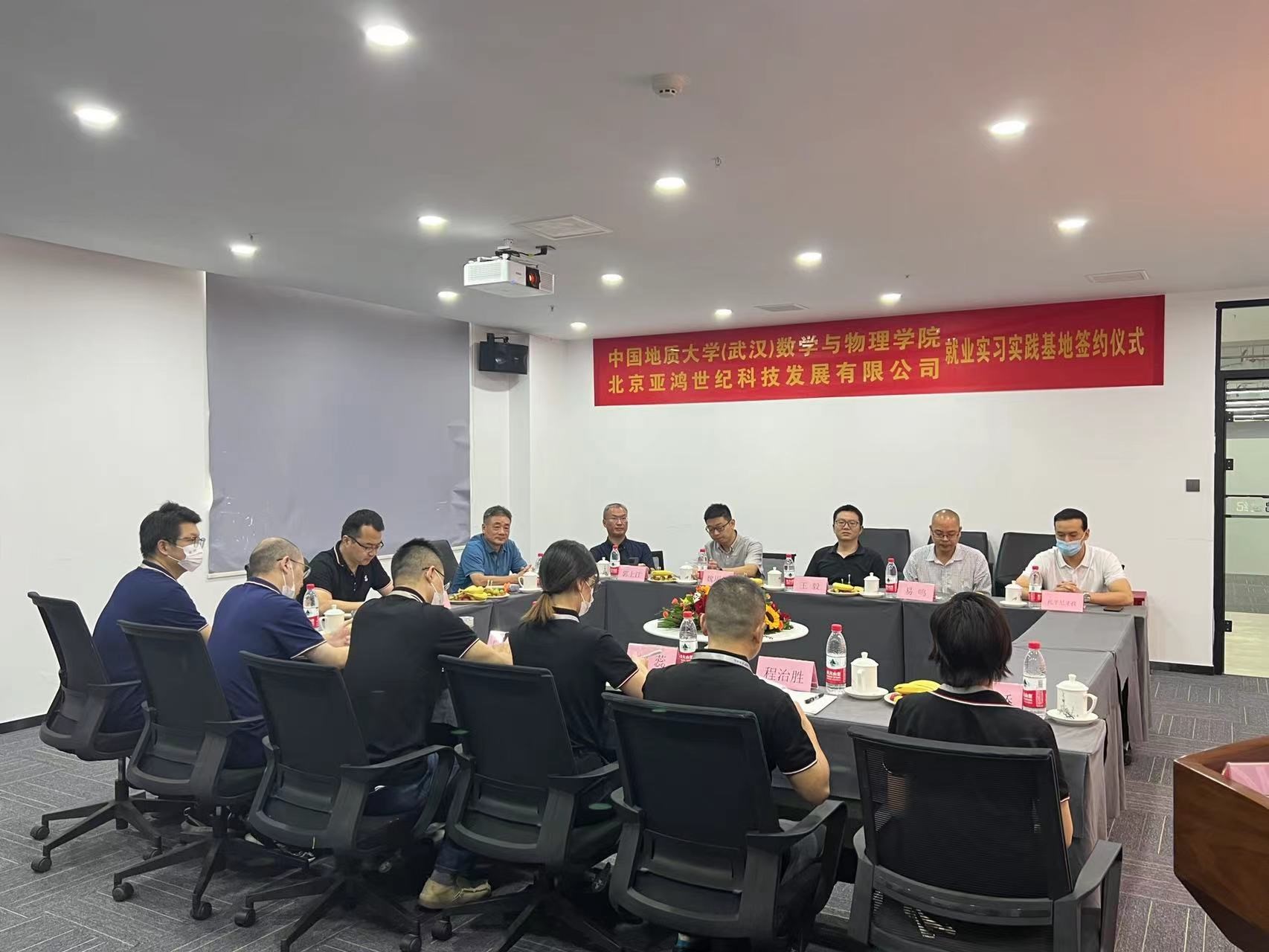 为推进产学研合作,深化本科人才培养模式改革,提高数学类本科人才培养质量,落实访企拓岗促就业专项行动工作要求,加强校企合作,9月30日,德赢官网与北京亚鸿世纪科技发展有限公司(以下简称“亚鸿公司”)签署德赢ac米兰官方合作(武汉)数学与物理学院就业实践基地协议。学院书记吴太山、学院院长郭上江、副院长魏周超、数学与应用数学系主任王毅、信息与计算科学系主任易鸣、辅导员托乎尼牙孜与北京亚鸿世纪科技发展有限公司总经理兼党支部书记林飞、数据智能分析部总监熊骁、信安产品研发部总监刘俊、产品交付部副总监陈凌浩、启航部副总监刘蕊、数安产品研发部副总监程治胜、研发管理部副经理代春娇以及人力资源部经理李莉等部门负责人座谈交流,共同见证签约。