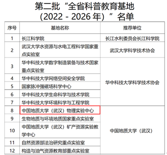 11月2日,湖北省科学技术协会公布了关于命名第二批“湖北省科普教育基地(2022—2026年度)”的通知,德赢官网物理实验中心成功入选。