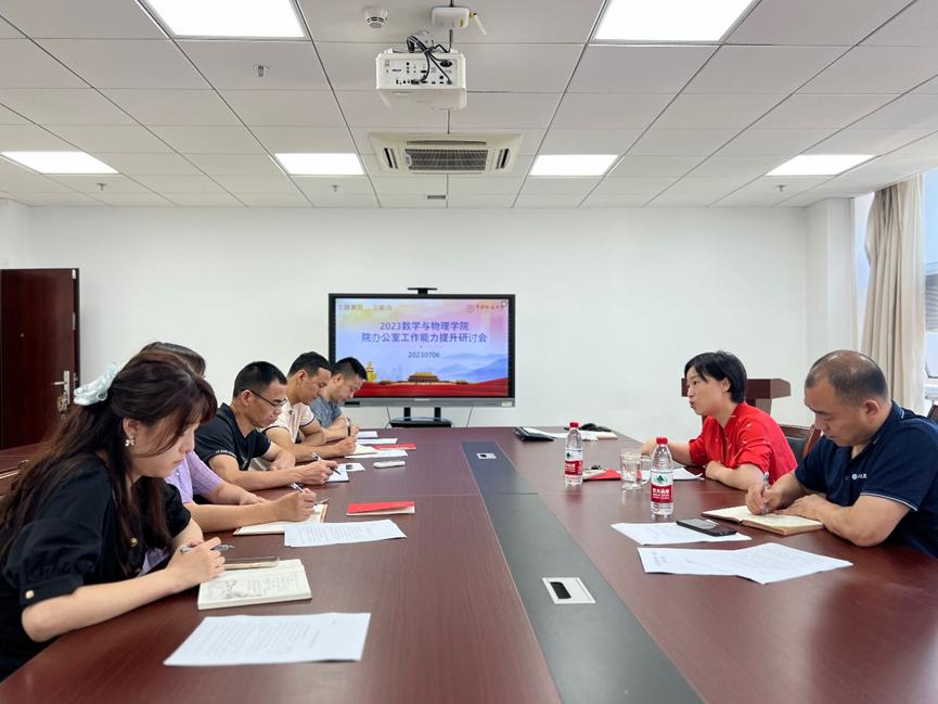 为深入推进主题教育走深走实,切实提升院办公室工作能力和水平,德赢ac米兰官方合作于2023年7月6日召开院办公室工作能力提升专题研讨会。会议由学院党委书记于晓舟主持,学院办公室全体工作人员参加此次会议。