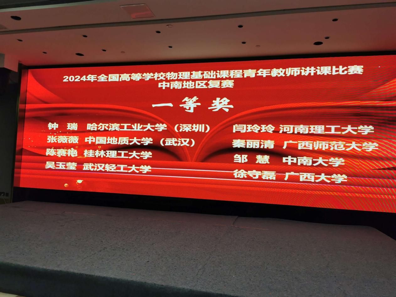2024年全国高等学校物理基础课程青年教师讲课比赛中南地区复赛于6月21日-23日在河南洛阳成功举办,德赢官网张薇薇教师参赛并获得一等奖。