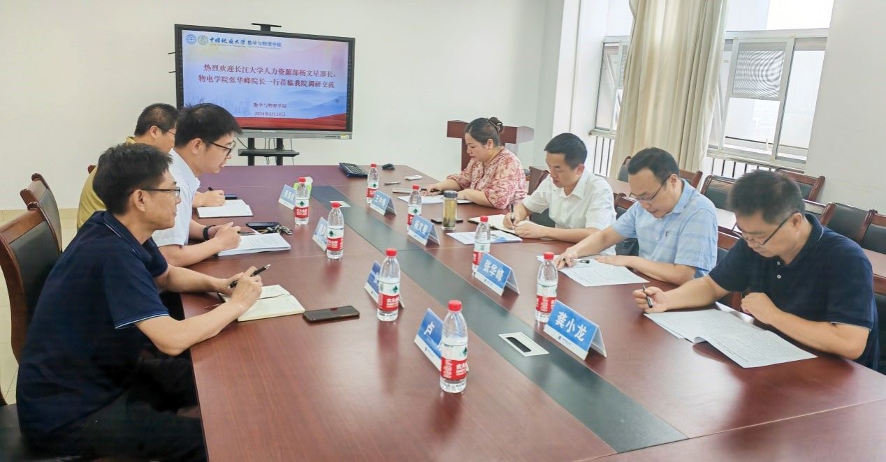 8月24日上午,长江大学人力资源部部长杨文星、物理与光电工程学院院长张华峰一行莅临德赢官网开展调研交流,随行的还有长江大学人力资源部副部长王忠梅、物理与光电工程学院副院长龚小龙等。德赢官网院长魏周超、副院长张保成、副院长张光勇和卢成教授参加座谈会。