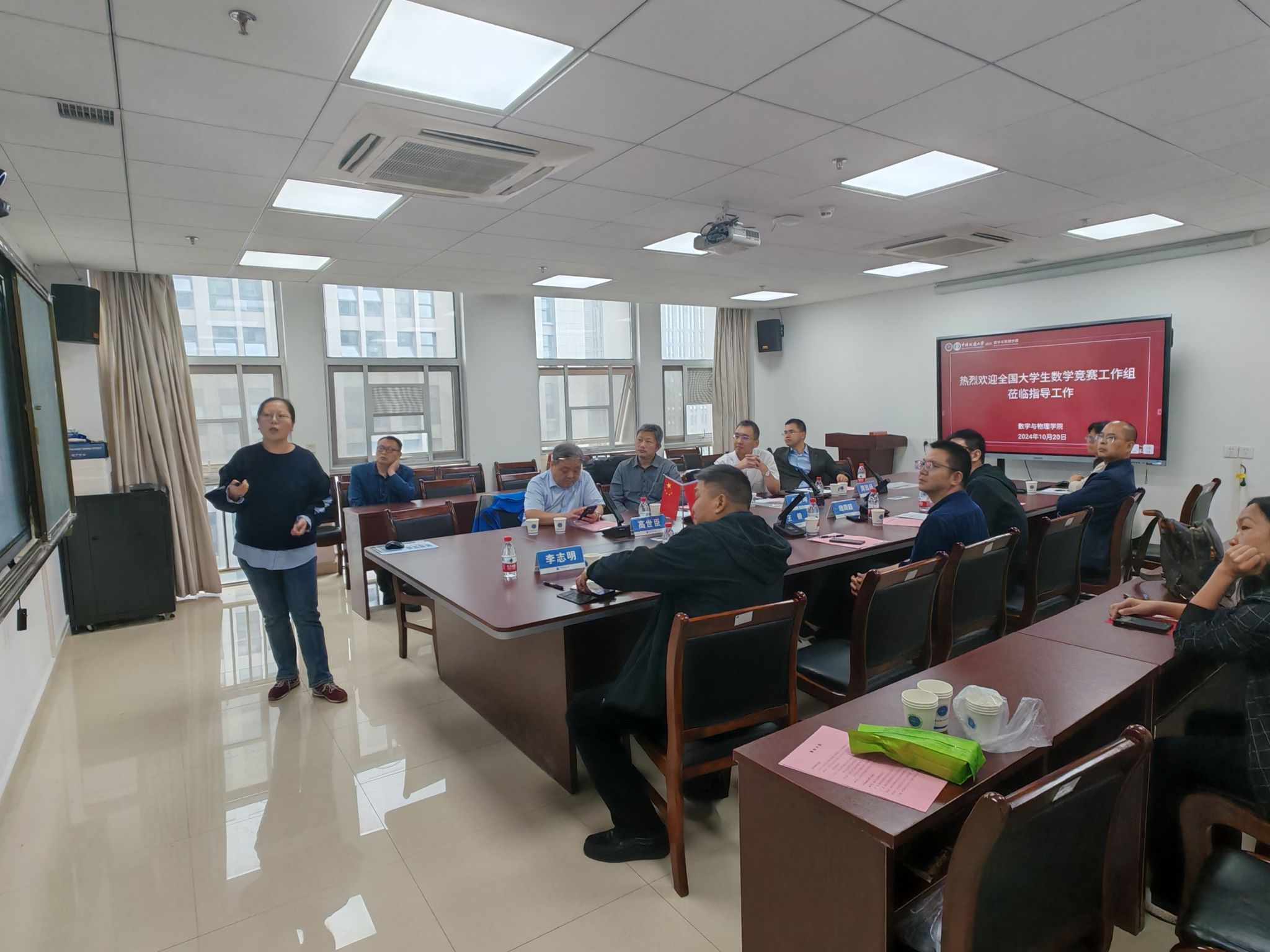魏周超代表学院对佘志坤教授一行表示热烈欢迎,并重点围绕高水平学科竞赛成果培育,介绍了学校和学院在指导教师团队建设、校级赛事组织、赛前集训、专家指导等方面的具体工作举措。数学竞赛负责人李志明老师和王元媛老师分别从竞赛培训、校内选拔、组织参赛报名、获奖成果和政策支持等方面详细汇报了德赢官网在组织全国大学生数学竞赛中的相关工作和取得的成绩。