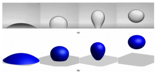 多相电流体动力学广泛应用于微流控、电润湿及油水乳液中石油提取等工程领域,其核心挑战在于准确模拟电场作用下两相流界面的耦合演化。传统模型多基于Taylor提出的“漏电介质模型”,但该模型存在热力学不一致性,且忽略了非线性表面电荷对流,难以全面反映实际物理机制。本研究突破了这一限制,引入Onsager变分原理,推导出满足热力学一致性的控制方程组,包括Navier-Stokes方程、Cahn-Hilliard方程和完整的Poisson-Nernst-Planck方程。在此基础上,研究构建了热力学一致的相场格子Boltzmann方法,并通过在格子Boltzmann方程中引入离散强迫项,有效应对介电常数差异显著的情形,提升了算法稳定性与精度。该方法成功模拟了电渗流、均匀电场中液滴变形及反向电润湿中的液滴脱离等典型问题,结果与理论解析解和实验数据高度一致,证明了所提模型的物理合理性与数值可靠性。