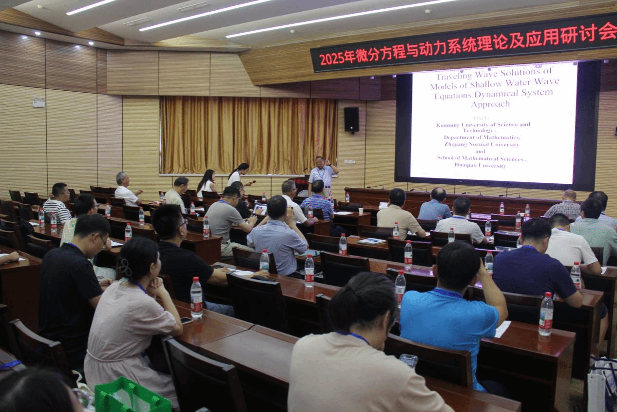 开幕式圆满落幕之后,李继彬教授作了题为“Traveling Wave Solutions of Models of Shallow Water Wave Equations: Dynamical System Approach”的首场报告,为本次研讨会拉开了学术交流的序幕。会议期间,共精心安排了15场高水平的学术报告,内容丰富多样、涵盖广泛,聚焦微分方程与动力系统中的数学基础理论以及相关应用领域的前沿热点问题。这些报告为参会人员搭建了一个高水平的学术交流平台,有力促进了多学科、多领域之间的合作分享与学术探讨。