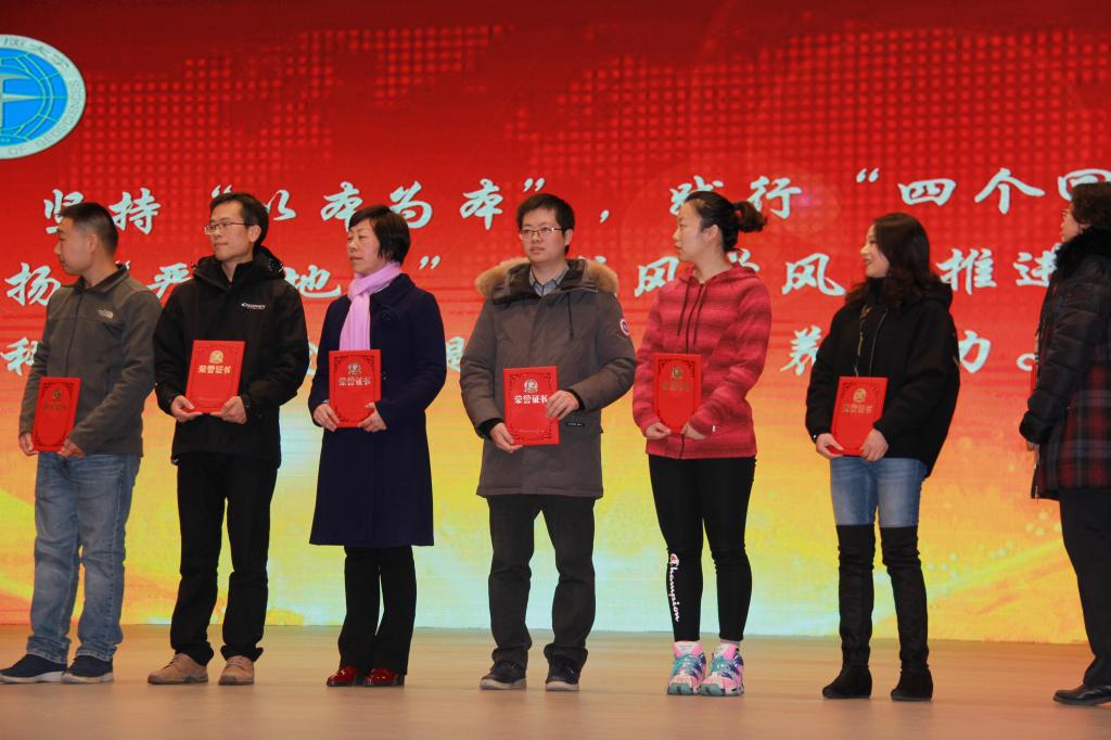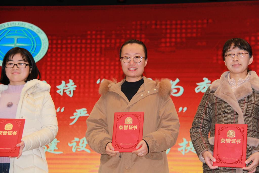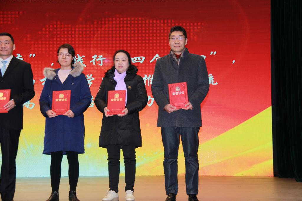 会议还对在今年教学、教研等各项教学工作中涌现出来的先进教师进行了隆重表彰,德赢官网吴妍、龙光芝、罗文强、黄昌盛、李志明、韩艳玲、肖海军等老师受到表彰,登台领奖。