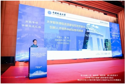 会议期间,高等学校大学数学教学研究与发展中心主任李继成教授解读了2024年度工作总结及2025年立项指南,鼓励高校围绕“AI + 数学教育”“新工科数学课程群建设”等方向开展联合攻关。在分组讨论环节,德赢官网黄刚教授做了“大学数学课程资源建设在地学拔尖创新人才培养中的实践与探索”的项目汇报,介绍了德赢官网大学数学与地学交叉教学团队围绕地球科学与大学数学课程的融合,构建知识点对应的应用体系,形成具有代表性的课堂教学案例,组织编写具有新工科特色的系列教材、推动课程资源数字化建设,积极开展教学实践与探索,提升学生交叉学科素养与应用能力。报告受到了与会同行的高度赞扬。