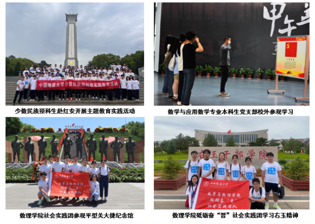 学院202290余名少数民族预科生赴革命传统教育基地红安,接受革命传统教育,进一步传承雷锋精神,铸牢中华民族共同体意识。数学与应用数学专业本科生党支部前往中山舰博物馆、武汉革命博物馆参观学习红色精神,坚定理想信念。学院砥砺奋社会实践团队赴山西省右玉县了解右玉生态文明建设的前生今世,学习和感悟右玉精神;参观大同市灵丘县平型关大捷纪念馆,学习革命先辈们英勇顽强的抗日事迹和不畏艰险的斗争精神。