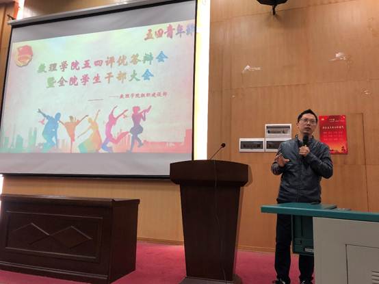 2019年3月23日早上8点30分,数学与物理学院副院长黄刚老师,党委副书记徐超老师,团委书记朱佳斯老师,学工组黄恬恬老师、孙宇涛老师、托乎尼牙孜老师,学工助理王锦妍,学工助理李申,本研学生代表,大一大二全体班干部,大三大四、研究生全体班级主要干部及答辩班级全体学生齐聚教三109,召开德赢ac米兰官方合作五四评优答辩会暨全院学生干部大会。