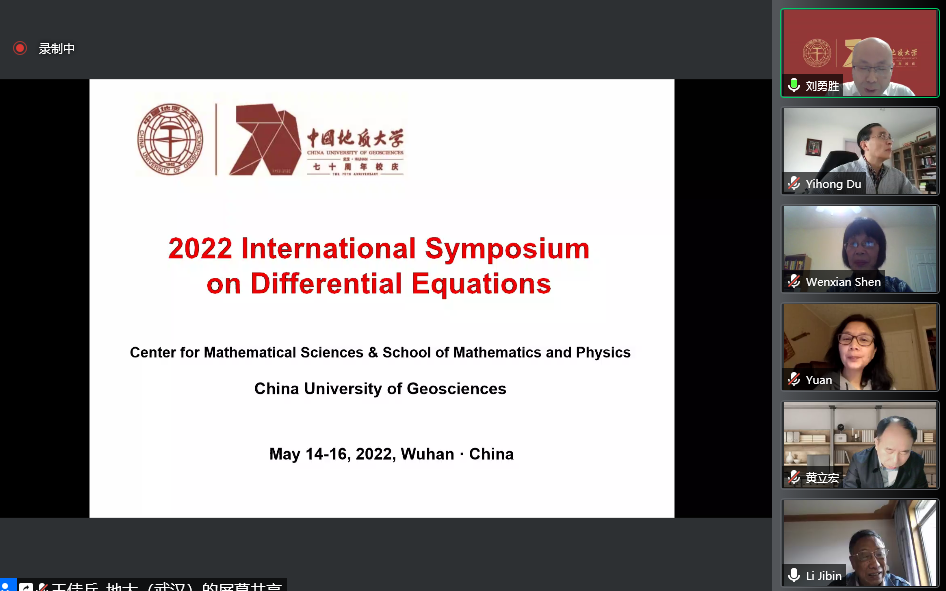 2022年5月14日至15日,德赢ac米兰官方合作(武汉)主办“2022年微分方程国际研讨会(2022 International Symposium on Differential Equations)”在腾讯会议线上举行。此次国际会议是德赢ac米兰官方合作(武汉)70周年校庆的系列学术活动之一,以展示和介绍国内外微分方程定性与稳定性理论及应用的最新研究成果和进展为出发点,以加强国内外微分方程及相关相关领域的学术交流与合作为目的。大会开幕式由德赢ac米兰官方合作(武汉)数学与物理学院院长郭上江教授主持,德赢ac米兰官方合作(武汉)副校长刘勇胜教授以及加拿大应用数学首席教授(Canada Research Chair)、加拿大首席资深工业与应用数学主席、加拿大应用与工业数学会会长、加拿大约克大学疾病建模中心创始主任,危机与灾难模拟快速反应项目创始主任吴建宏教授分别致辞。