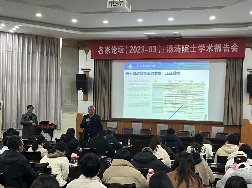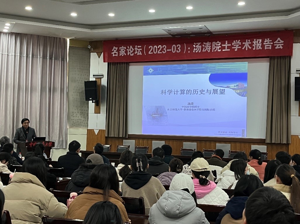 应数学与物理学院院长郭上江教授邀请,北京师范大学-香港浸会大学联合国际学院汤涛院士于2023年2月18日上午在南望山校区八角楼学术报告厅与德赢官网师生进行学术交流,并作题目为:“科学计算的历史与展望”的学术讲座,校内外100多名师生参加了本次学术讲座。报告会由院长郭上江教授主持。