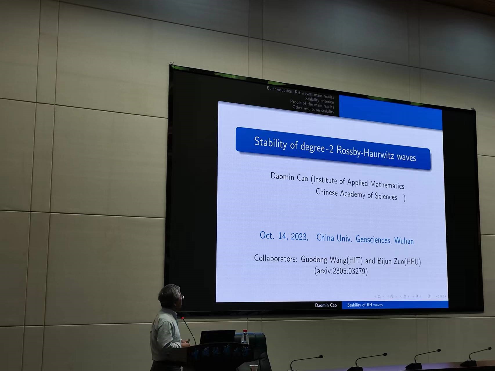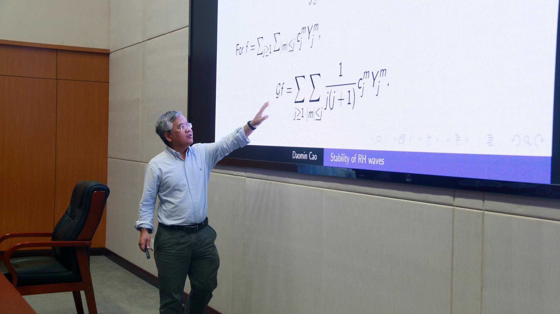 应德赢ac米兰官方合作(武汉)数学科学中心和德赢ac米兰官方合作邀请,国家杰出青年基金获得者、中国科学院数学与系统科学研究院研究员曹道民于2023年10月14日为德赢ac米兰官方合作名家论坛做了题为“Rossby-Haurwitz波的稳定性”的学术讲座,德赢官网相关研究领域的老师和学生参加了本次学术讲座。